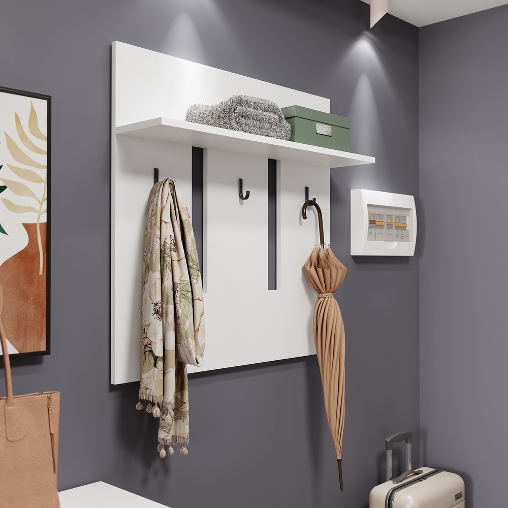 Вешалка Лайт ВШ-001 оснащена тремя крючками для одежды и полкой под шапки глубиной 170 мм. Изделие выделяется очень креативным дизайном: вешалка не имеет видимого снаружи крепежа, в ее конструкции используется скрытый врезной навес, что только идет на пользу ее внешнему виду.