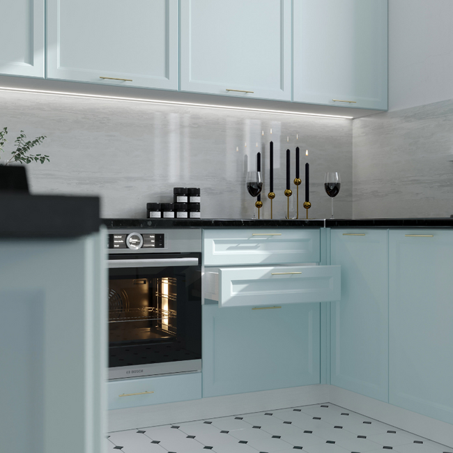 Сочетание гладкого фасада с рифленым полупрозрачным стеклом в вертикальную полоску смотрится оригинально и нестандартно. Эта линейка прекрасно сочетает в себе благородство прямых линий и изысканные детали. Вы непременно оцените гладкость матового покрытия, прямые линии фрезеровки и эстетичность оттенков, которые подобрали наши дизайнеры таким образом что все эти цвета гармонично сочетаются между собой в любых комбинациях. Ручки в стоимость не входят, приобретаются дополнительно. Цена модульной кухни указана за 1 метр погонный с учетом столешницы, для сравнения цен на разные модели кухонь. Фактическая стоимость кухни определяется из выбранных вами модулей. Для помощи в расчете и составлении дизайн-проекта кухни можно оставить заявку на сайте.