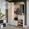 вешалка, открытые и закрытые полки, 2 выдвижных ящика