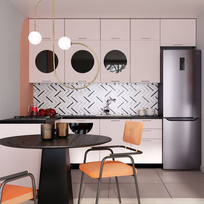 Акцентом кухни выступают глянцевые иллюминаторы – круглые черные стекла будто появились здесь благодаря экстравагантному произволу и стали настолько уместными, дополнив образ гарнитура, и привнеся в него исключительность. Цветовая палитра линейки подобрана таким образом, что у наших покупателей появляется возможность для безграничных экспериментов. Цена модульной кухни указана за 1 метр погонный с учетом столешницы, для сравнения цен на разные модели кухонь. Фактическая стоимость кухни определяется из выбранных вами модулей. Для помощи в расчете и составлении дизайн-проекта кухни можно оставить заявку на сайте.