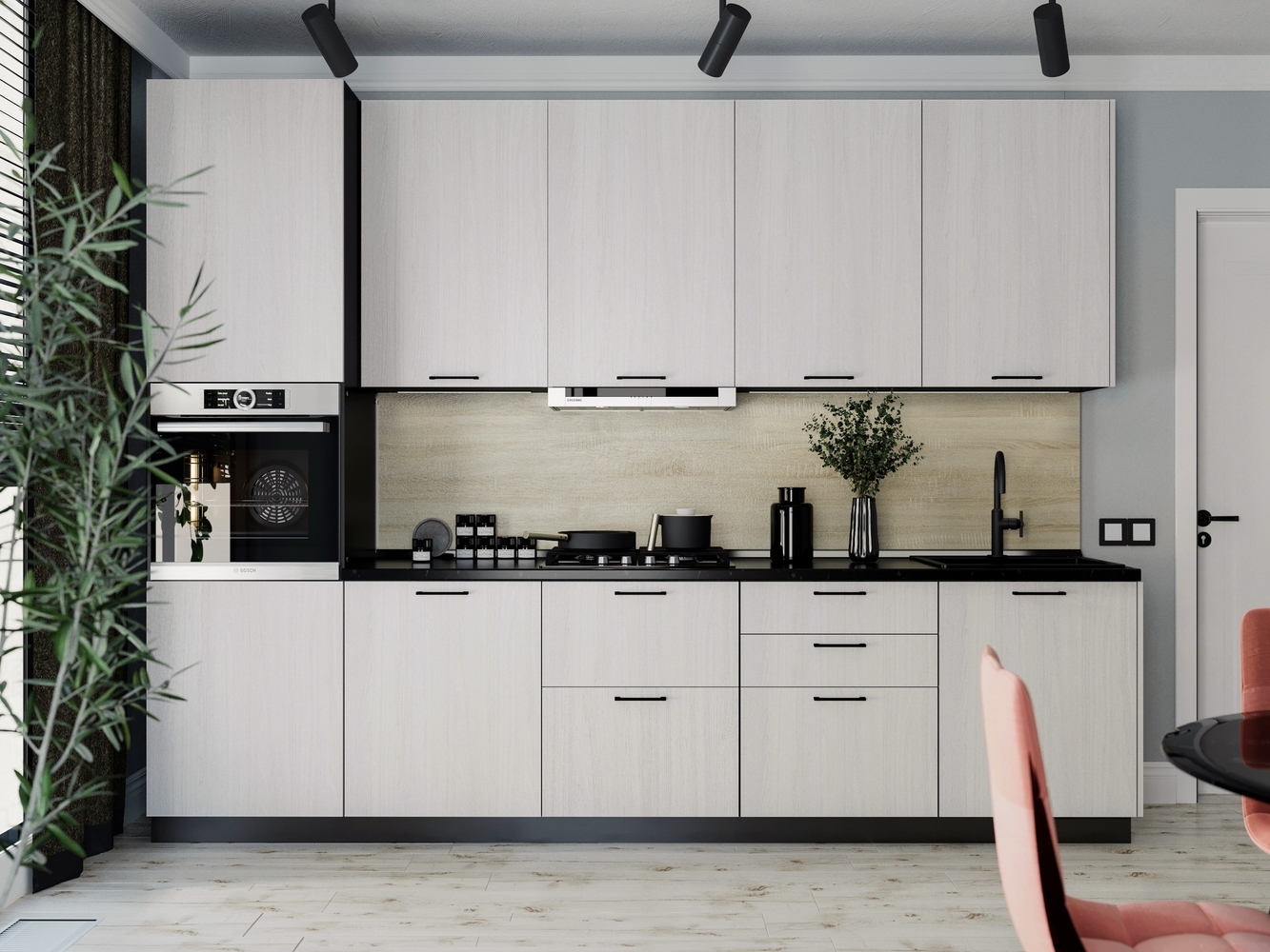 Эту линейку можно назвать универсальным рецептом для любых пространств: лаконичный дизайн, актуальная текстура и цвета фасадов – с их помощью обретут гармонию даже самые замысловатые интерьеры. Она будет одинаково гармонична как в малогабаритных квартирах, так и просторных домах. Цена модульной кухни указана за 1 метр погонный с учетом столешницы, для сравнения цен на разные модели кухонь. Фактическая стоимость кухни определяется из выбранных вами модулей. Для помощи в расчете и составлении дизайн-проекта кухни можно оставить заявку на сайте.