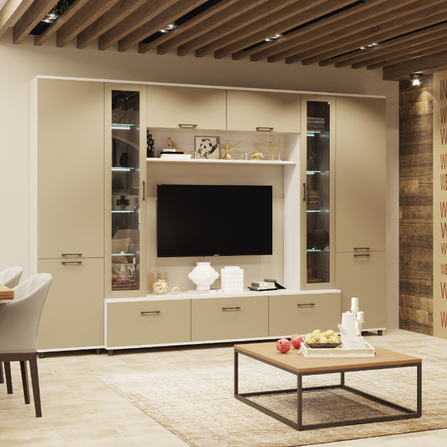 Коллекция мебели для гостиной Грейс предлагает широкий выбор модулей, стилистически и функционально сочетающихся между собой, 85 элементов коллекции позволят подобрать оригинальные композиции под любой стиль и любые габариты комнаты: будь то небольшая гостиная или солидный холл. Фасады коллекции изготовлены на уникальной немецкой производственной линии, не имеющей аналогов в мире. Технология производства позволяет получать фасады с защитой от выцветания. Все модули можно увидеть на странице серии.