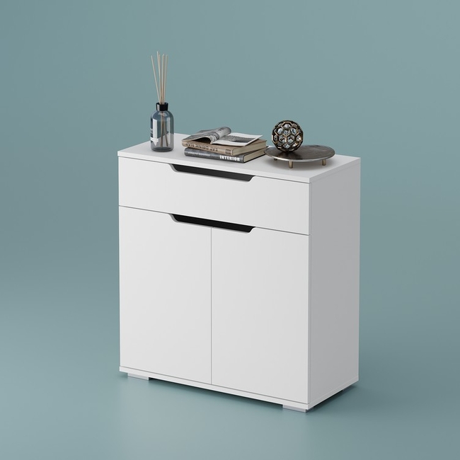 «Универсальность применения» - так можно за пару слов описать главное достоинство комода Лайт КМ-002. Его строгие линии и аккуратные фрезерованные ручки одинаково хорошо будут смотреться как в жилых комнатах, так и в прихожей. Вместительная закрытая секция разделена полкой на два отсека.
