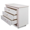 Алиса – мебель для девочек и девушек в классическом стиле, который поддержан светлым декором, цветочными рисунками и патиной на фасадах. При создании детской использовались приемы итальянского декорирования мебели. Мотивы классической росписи в сочетании с любимым мотивом детского рисунка – бабочки и цветы – создают ощущение юности и нежности. Использование декоративных элементов – корон и карнизов в наборе мебели не перегружают интерьер детской комнаты и при этом создают ощущение интерьера маленькой принцессы. Изящные ручки под золото со вставками молочно-белого цвета идеально сочетаются с кремово-белым декором и золотистой палитрой рисунков вензелей. При всей внешней легкости и утонченности мебель весьма практична в использовании, благодаря надежной фурнитуре. Все модули можно увидеть на странице серии.