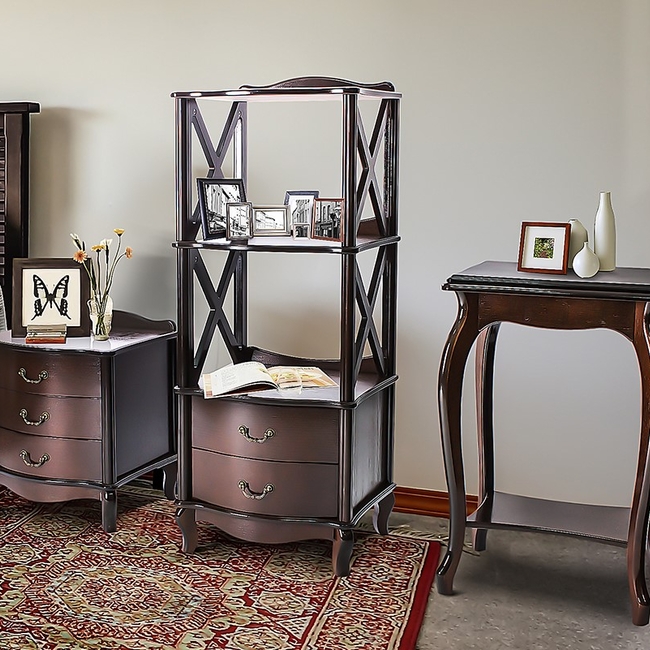 Этажерка Джульетта-2 обладает незамысловатыми, но при этом приятными глазу формами. Классический стиль данной модели подойдет к любому интерьеру. Кроме того, этажерка Джульетта-2 имеет несколько функциональных открытых полок, а также два вместительных выдвижных ящика, которые можно заполнить всеми необходимыми вещами.