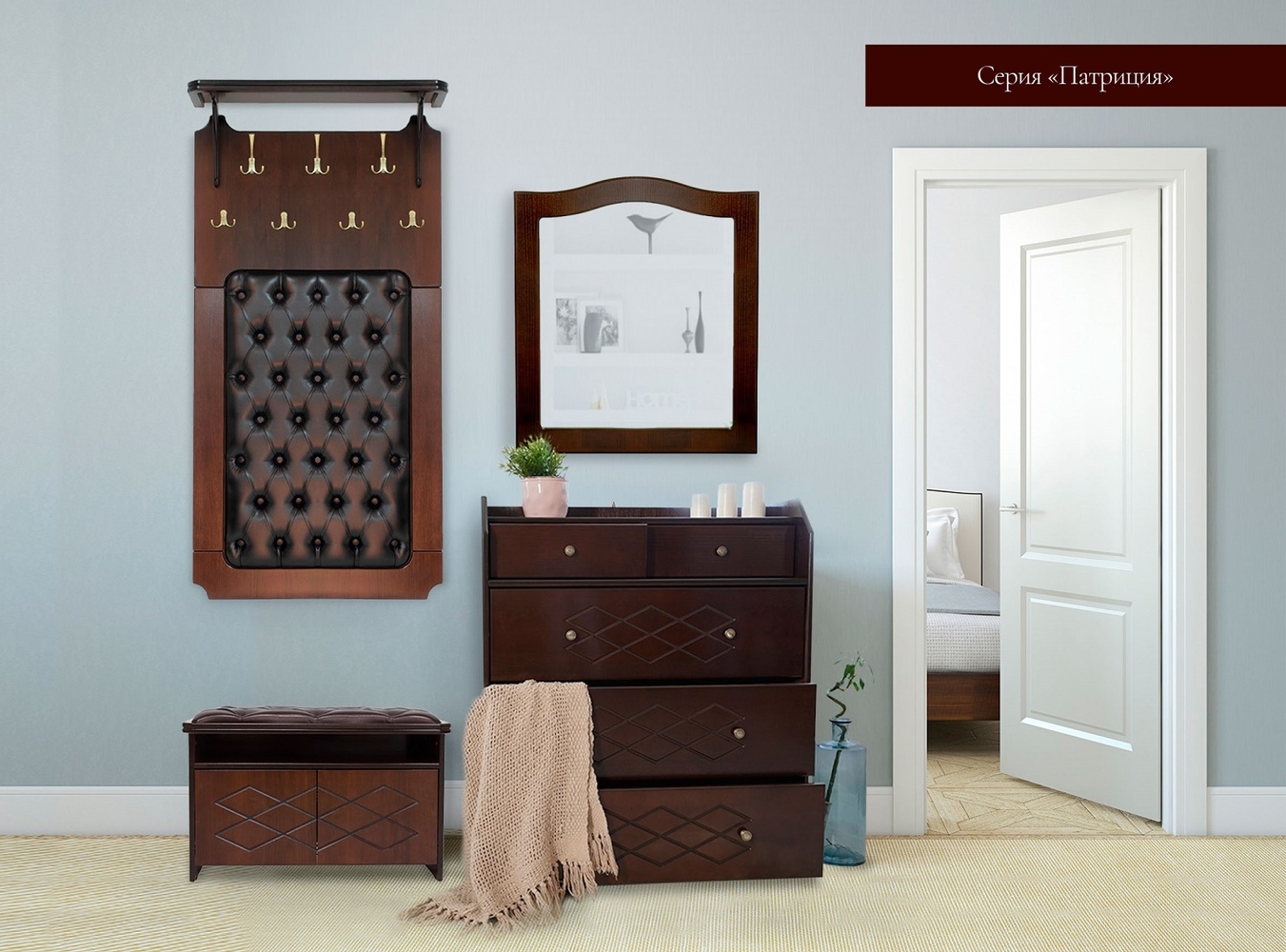Вешалка Патриция определенно произведет на ваших гостей самое наилучшее впечатление, как только они перешагнут порог прихожей. Несмотря на свой небольшой размер, данная модель выглядит очень стильно и элегантно благодаря декоративным элементам, выполненным из экокожи, а также невероятно практична в использовании.
