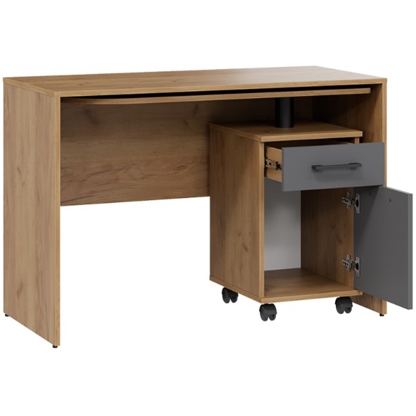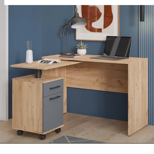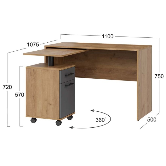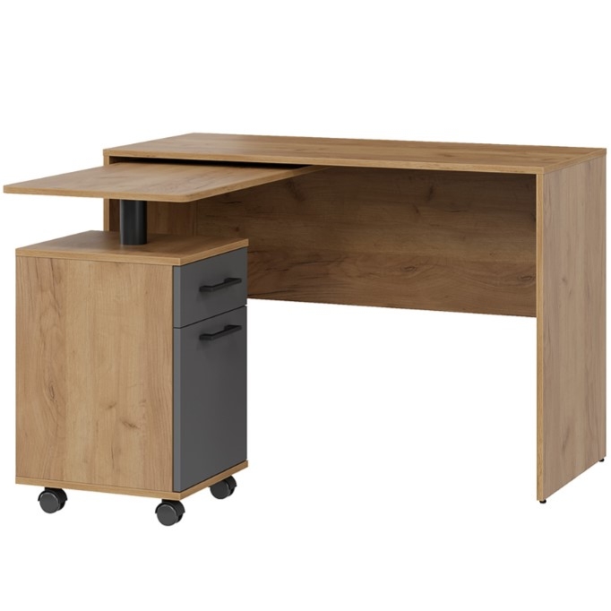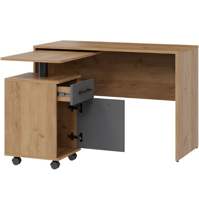 Практичность, стиль и удобство — вот что делает этот компьютерный стол незаменимым спутником в повседневной жизни, создавая комфортные условия для учебы, работы и творчества. Особенностью стола является его многофункциональность. Простая и надежная конструкция предусматривает все необходимое для комфортной работы или учебы. Стол может использоваться как угловой, так и прямой конфигурации, благодаря чему, легко адаптируется под различные нужды и позволяет максимально эффективно использовать доступное пространство. Выкатная столешница имеет скругленный безопасный угол, что убережет от травмирования, а вместительный ящик и ниша за дверью, позволят организовать рабочее пространство максимально удобно и эффективно, разместить все необходимые девайсы, принадлежности для учебы и работы.