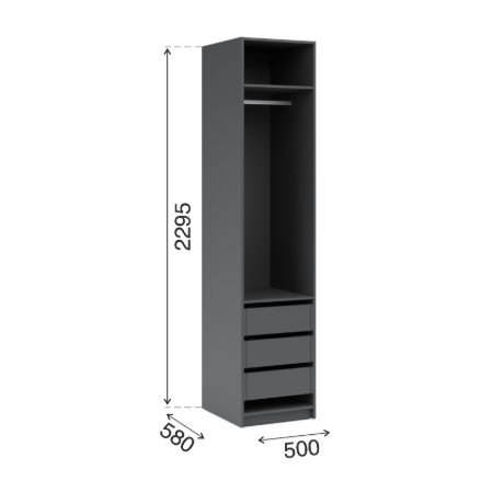 Система хранения Рондо - это современное решение для хранения, где каждая деталь продумана до мелочей. Полки, корзины, брючницы и выдвижные элементы обеспечивают легкий доступ и порядок. Система легко масштабируется и настраивается под индивидуальные параметры помещения благодаря модулям с разной глубиной и шириной. Нейтральная цветовая гамма и элегантные стеклянные фасады ящиков органично вписывается в любой интерьер, сочетая функциональность с эстетикой. Все модули можно увидеть на странице серии. Состоит из корпуса, комплект полок, выдвижные ящики и штанга. Возможны разные варианты . Так же с дверьми.
