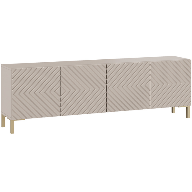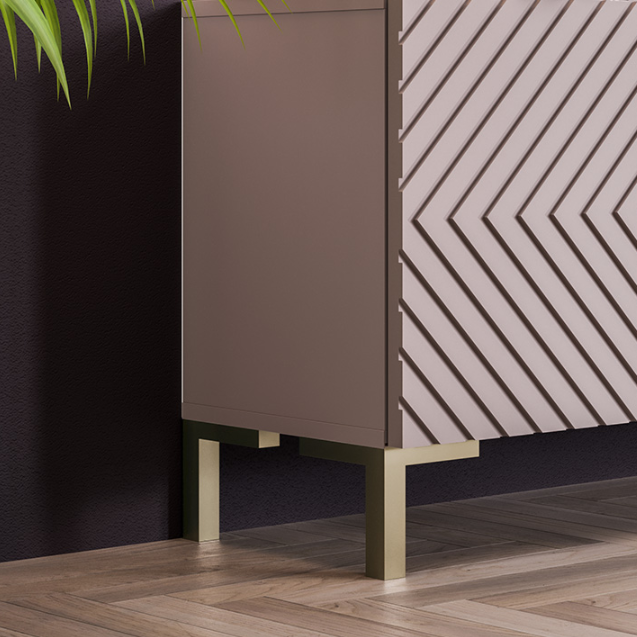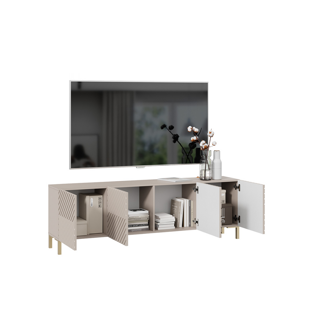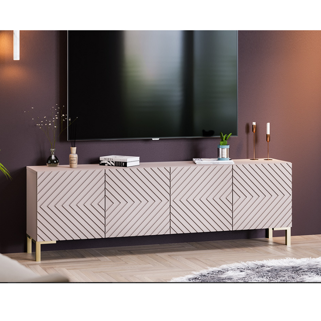 Тумба под ТВ обладает геометрическим силуэтом и привлекательной цветовой палитрой, превращая новинку в стильный модуль, который прекрасно дополнит современный интерьер гостиной.