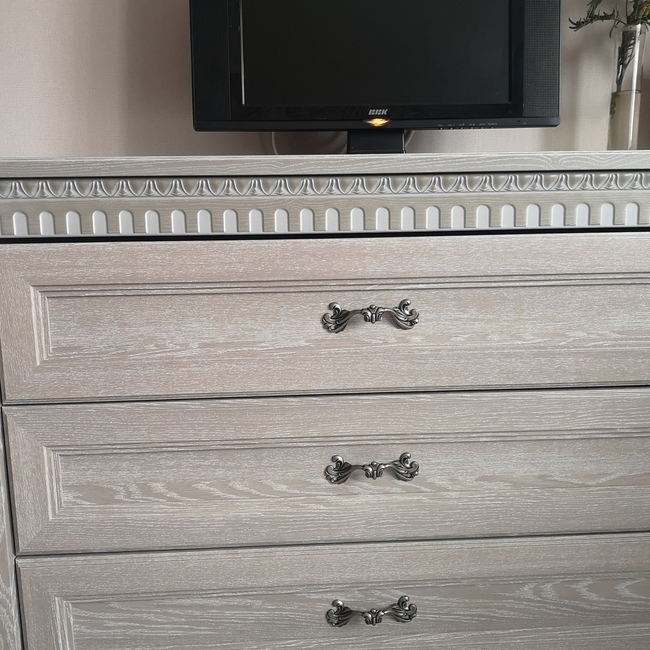 Классическая серия Лючия представлена в 2-х декорах, реалистично имитирующих древесину натурального дуба: в темно коричневом «дубе оксфорд» и модном серо-бежевом «дубе оксфорд серый». Запоминающийся облик коллекции обеспечивают оригинальные дизайнерские приёмы: торцевые и внутренние модули-колонны, сложная радиусная гравировка и фигурная фрезеровка в сочетании с объемными декоративными элементами. Мебель оснащена надежной немецкой фурнитурой «Hettich» и роскошными итальянскими ручками под состаренное золото или серебро, что является несомненным плюсом ко всем ее достоинствам. Все модули спальни можно увидеть на странице серии.
