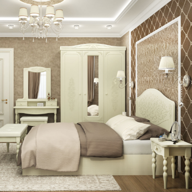 Шкаф разделен на три секции. Первая (слева-направо) секция шириной 510 мм имеет верхнюю полку и платяное отделение с трубой для вешалок. Вторая секция шириной 510 мм так же имеет верхнюю полку, платяное отделение и штангу. Предназначено для более коротких вещей, так как есть дополнительная нижняя полка, под которой расположены два выкатных ящика с отдельными фасадами. Крайнее правое отделение шириной 510 мм оборудовано пятью устанавливаемыми полками (всего шесть с нижней). Все модули можно увидеть на странице серии.