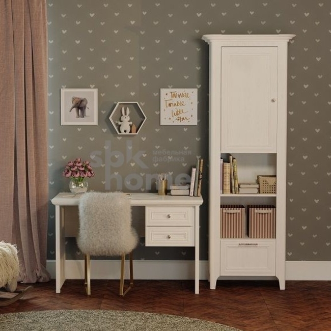 Коллекция Клер - это олицетворение строгости и гармонии. Она сочетает в себе роскошь и величие со спокойствием и уютом. Предметы мебели коллекции Клер имеют строгий стиль и четкие линии, а цветовая гамма данной коллекции, поможет расслабиться и погрузиться в атмосферу уюта. Декор представляет собой сочетание рисунка слегка древесины и включений в виде сучьев, которое не бросается в глаза и не выглядит слишком ярким, имеет очень светлый, почти полностью белый оттенок. Направление открывания двери определяется при сборке. Высота ножек 110мм. Все модули можно увидеть на странице серии.