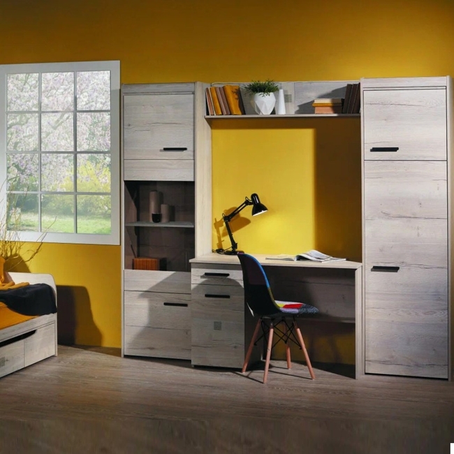 Коллекция мебели Мале дает возможность комбинировать мебель различных жилых зон и включает все необходимые предметы мебели для оптимального создания интерьера комнаты подростка, которая одновременно выполняет функции гостиной, спальни и рабочего кабинета. Подростковая комната – это мультифункциональное пространство, которое должно быть комфортным, уютным и безопасным. Все модули можно увидеть на странице серии. Открытая часть пенала при необходимости закрывается дополнительной дверью со стеклом. Направление открывания дверей определяется при сборке. Стоимость указана с дверью со стеклом М-8. Возможно заказать без стеклянной двери. Стоимость уточняйте у менеджера.